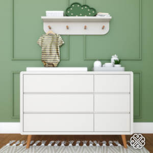 Díponível nas cores branca, cinza, rosa, verde e azul, sempre com as frentes das gavetas na cor branca.